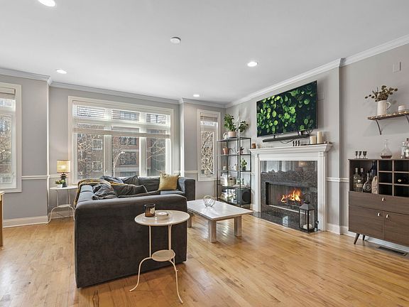 Great 2 bedroom, 2 bath condo on one-way Bosworth at the crossroads of West Town, Wicker Park, and Noble Square. Steps away from parks, restaurants, nightlife, the Blue Line, and I-90/94. This light filled home features high ceilings, hardwood floors, and an open living/dining area with a cozy fireplace and western exposure. The kitchen offers 42" cabinetry, granite countertops, new light fixtures, an eat-in bar, and new stainless steel appliances. The spacious primary suite includes a professionally organized walk-in closet and a bath with whirlpool tub and separate glass shower. The second bedroom features a Murphy bed and office space. Includes in-unit laundry, a private deck accessible from the unit's hallway and primary bedroom. Includes extra storage, and tandem parking. A must see!