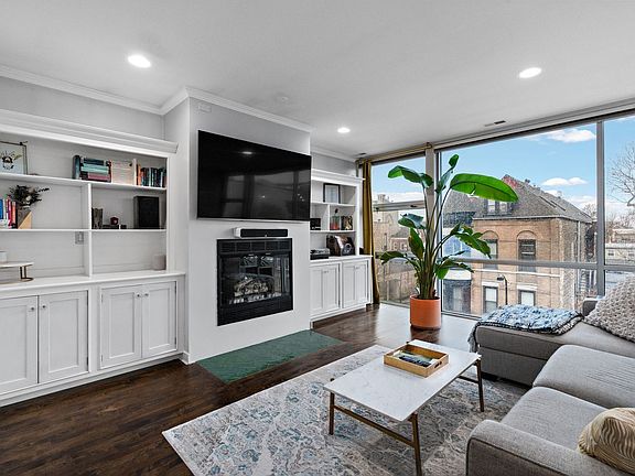 Welcome to this outstanding 2 bed/ 2 bath penthouse unit in the heart of Bucktown! As you step inside the home you are met with great floor to ceiling windows that allow the unit to be flood with natural lighting. This open kitchen / dining and living space is perfect for hosting guests or having family over. Hardwood flooring throughout including updated lighting fixtures make this home worth while. Your kitchen has upgraded stainless steel appliances and an abundance of cabinet and counter top space. Bathrooms are both updated and there is not much else to do at this property except move in. Both of the bedrooms allow access to a spacious deck with stunning views but not only this you have private roof rights ensuring this property does not lack exterior space. In unit washer/dryer and large walk in closets allow convenience into your world. A parking space is included in the price. Located just steps away from fabulous restaurants, stores, and amenities, and with easy access to the expressway and public transportation, this penthouse unit offers the ideal blend of luxury and comfort. Don't miss your chance to make this your new home!