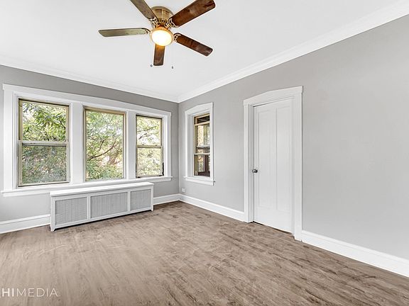 Fully remodeled unit with hardwood floors, fresh paint, updated bathroom, lots of outside light.