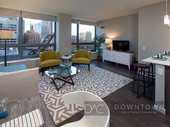 Enjoy 1 month free in this high-rise River North studio with in-unit washer and dryer and panoramic city views. Thoughtfully designed with rich oak flooring, Snaidero Italian cabinetry, and expansive bay windows, this studio blends style and functionality.