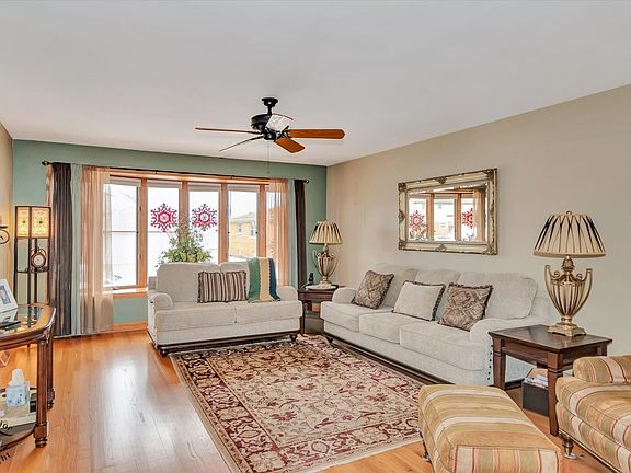 Immaculate & meticulously maintained classic Mt Greenwood home in sought-after location. Tons of living space & loads of upgrades. Formal living room features hardwood floors, recessed lighting & ceiling fan. Huge updated eat-in kitchen features Corian counters, custom oak cabinetry, ceramic floor, newer stainless appliances (2019), island, pendant lighting, 2 pantries, & beautiful glass backsplash. Great flexibility with 2 bedrooms and full remodeled bath on main level. 2nd story addition features 3 additional bedrooms, newer wood flooring (2019), open storage area, & fantastic master suite with walk-in-closet, glass barn door (2019), & private luxury bath w/walk-in shower and whirlpool tub. Full beautifully finished basement (2015) features family room with stone fireplace & vinyl wood flooring, kitchenette w/granite counters & wine fridge, & office or workout room. Solid wood six panel doors, French drain tile in basement (2015), WICs throughout, sump pump with battery backup (2019), main level hardwood refinished (2020), upper level laundry hook up, newer front door (2020), 2 newer screen doors (2020), newer air conditioning unit (2020), newer furnace upstairs (2023), all windows updated & working, newer tankless hot water heater (2024), & new roof (2022)! Exterior space includes newer concrete patio, heated pool w/newer liner (2023), beautiful custom deck (2015), fully fenced yard, & 1 car attached garage with newer epoxy floor (2019). The attention to detail and impressive finishes and maintenance in this home are superior- you have to see it to believe it! This home is a rare find in an amazing location!