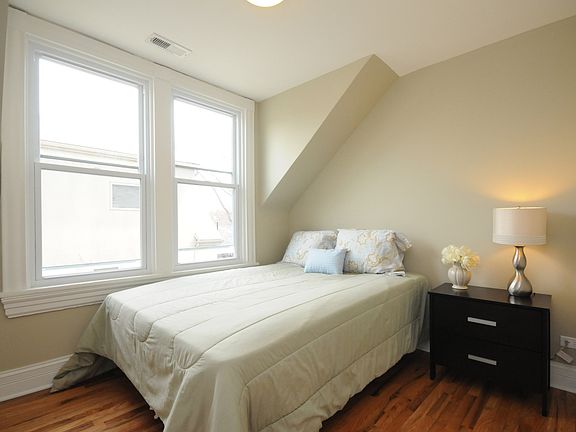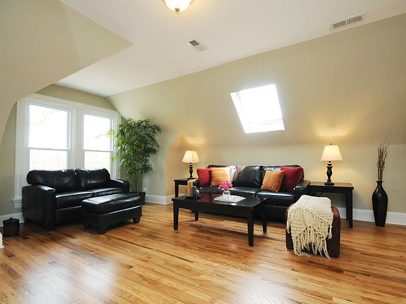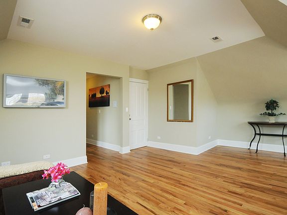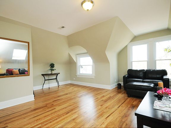 Beautiful Lakeview 2 bedroom plus den, one bath, super charming and bright Skylit Penthouse in super convenient Burley School neighborhood only 3 blocks to el! Hardwood floors throughout, vaulted ceilings, Great large Eat in kitchen with stainless appliances, wood cabinets and granite counters, dishwasher, central AC, Good closet space, marble bath with shower with glass enclosure, laundry in unit, Nice shared patio and yard, large private additional storage room in basement and 1 off street outdoor parking space included in rent. This is a terrfic unit on gorgeous residential street with shops, El and dining all right out your door! Available March 1. Landlord is Broker / Owner.