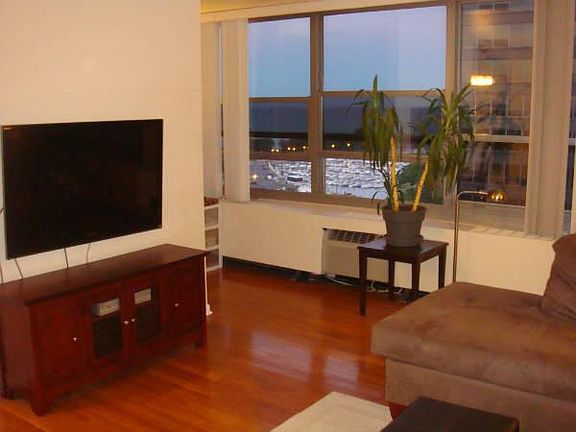 Valet parkingDoor manLake and Harbor ViewsThe unit offers great space for those looking for a one plus den.. The den doesn't have a door. it is a room that is hidden from the main living room by a wall that has a 4 foot opening. Great for a desk and bedroom set as you can see from the pictures. The living room currently has a "L"shaped Sofa, entertainment system, and a dining room table for 6. The kitchen has great counter space and a kitchen table inside. There are 2 hall closets for storage The master bedroom is large. can fit king sized bed, dresser and much more. The unit faces south and has windows along the whole south wall.Rent inclueds heat Water cable TV Fitness Center all you pay is the electric bill