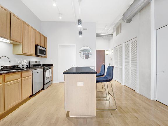 Welcome to this 1 bedroom, 1 bath in upscale loft building in highly sought out West Loop/Fulton Market area. This unit features 11 foot ceilings and open layout with gorgeous kitchen w/granite and stainless steel appliances. Upgrades include automatic floor to ceiling shades in bedroom, brand new in-unit W/D, customized closet, stainless steel appliances and customized storage entertainment center in bedroom. Private balcony off living room and bedroom. PARKING INCLUDED! Building has additional storage (full cage), bike room, door person and fitness center. Great West loop/Fulton Market District location. Minutes from Carnivale, Randolph Restaurant Row and Fulton Market.