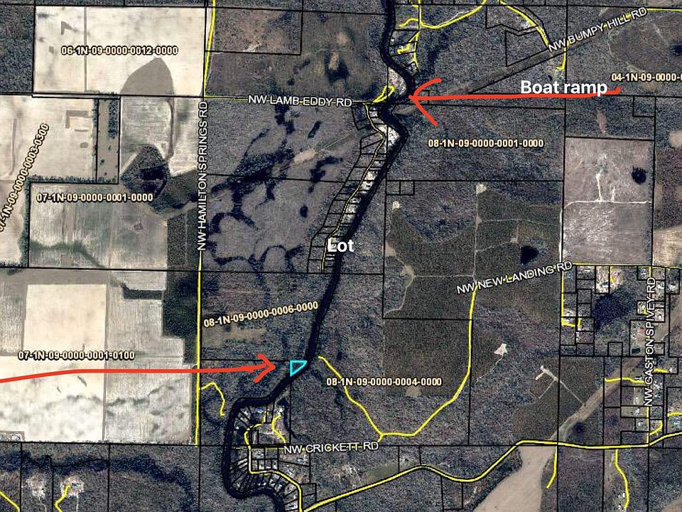Half an acre with approximately 300 ft. On the beautiful spring fed Chipola river great fishing with a small beach area. Property is land locked and is very secluded boat or canoe accessible from near by public boat ramp Lambs Eddy landing address is 20001 nw Hamilton Springs road Altha.