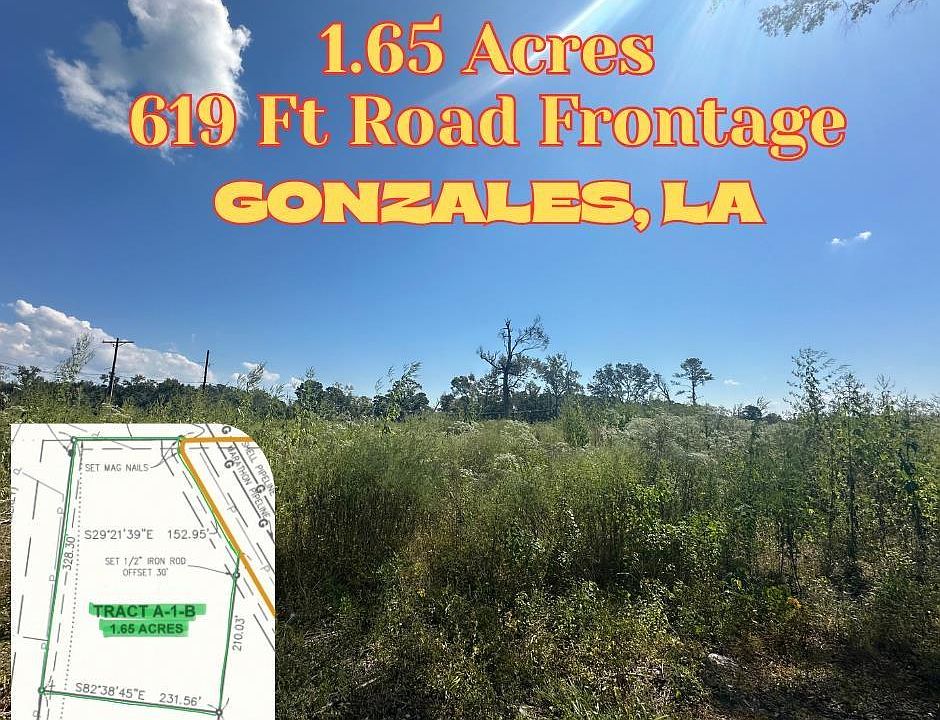 Cleared 1.65 Acre Corner Lot with 619 feet of Road Frontage in Gonzales! Absolutely Beautiful and Serene!! Excellent Lot 1 mile from St. Amant High School and 1 mile from Airline Hwy! No Restrictions, No HOA! Mobile Homes Allowed, Zoned Rural, so ok for some commercial (see Ascension Parish Guidelines). 100% Financing Available with low interest rates, lender qualifications apply. Contact Realtor for details.
