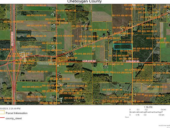 Beautiful high and dry 7.71 acre building site with frontage on a paved road. Great location for your new home or vacation get-away. Covered in semi-mature pines, this property is located just over 2 miles from I-75 and 8 miles from Cheboygan. Enjoy wooded privacy yet be close to the city amenities, the snowmobile/bike trails, the famous Cheboygan River and Inland Waterway and endless recreational activities. Surveyed! Two additional parcels are available: Parcel 1 with 7.54 acres priced at $26,500 and Parcel 2 with 7 acres priced at $24,500. Buy all 3 for a total of 22.2 acres for $78,000.