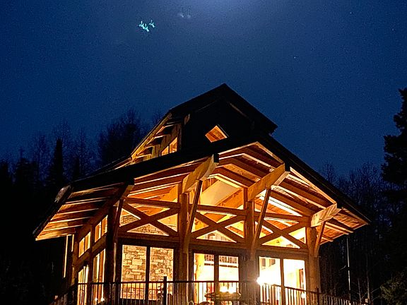 Inside, cathedral ceilings soar to 25+ feet, suspended on impossibly-large beams of locally-sourced, custom-milled timber. A standout feature is no metal in sight for the traditional joinery. It's truly impressive craftsmanship.