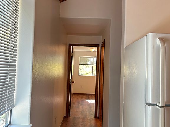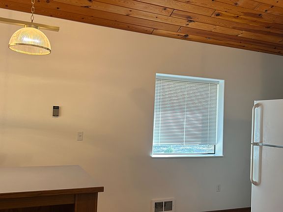 Cozy one bedroom, one bath two story apartment with enclosed one car garage. There is a small patio off of the bedroom that overlooks the neighborhood. This rental is attached to a large RV garage (the RV garage is not included with lease). The unit has new laminate flooring throughout, recently painted, ample storage space, and has a washer and dryer. Situated in a quiet neighborhood on a gravel road and near a river. Small unfenced yard for your use.