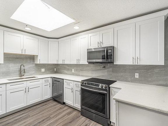 The kitchen comes equipped with a fridge, sink, oven, stovetop, as well as upgraded appliances.