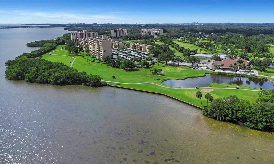 Stunning Resort-Style Condo with Designer Finishes and Breathtaking Views! Experience elevated living in this beautifully upgraded resort-style condo, showcasing elegant designer touches throughout. The chef-inspired kitchen features brand-new high-gloss cabinets, quartz countertops, and top-of-the-line New Samsung appliances, including a smart refrigerator and a built-in wine cooler. The kitchen seamlessly flows into a spacious open concept living area, where you’ll enjoy panoramic views of Tampa Bay and the lush golf course. The custom-designed TV accent wall adds a sleek, contemporary flair, while dropped ceilings with integrated lighting, new luxury vinyl flooring, and fresh paint throughout elevate the ambiance with modern sophistication. The primary suite offers a generously sized bathroom and a walk-in closet, while both bathrooms have been tastefully remodeled with high-end finishes. BRAND NEW WINDOWS (May 2025) throughout the entire unit enhance energy efficiency and comfort, and a New A/C unit (Oct 2025). Convenience is paramount, with a private laundry room located just steps from the unit—providing ease of use without disrupting your quiet interior space. Located in a secure gated community with 24-hour guard service, residents enjoy access to a resort-style swimming pool with whirlpool spa and sauna, a renovated clubhouse, and an on-site restaurant with tranquil water views. Access to a marina and a waterfront tiki bar, perfect for relaxing or entertaining by the bay. Your monthly HOA fee covers cable, internet, water, sewer, and trash pickup, ensuring a stress-free lifestyle. Optional golf course and marina memberships are also available for those seeking additional recreational opportunities.