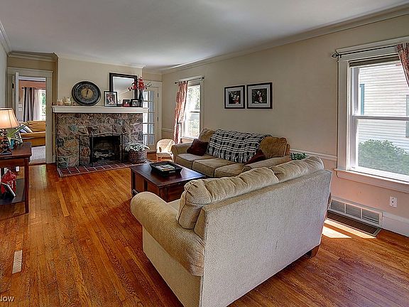Heights living at its best! Delightful colonial on a demand street, just a short stroll to the library, theaters, and the many great shops & restaurants in the vibrant Cedar-Lee retail district. Experience the cool vibe of the light-filled family room addition — open to the kitchen — with vaulted ceiling, loft, skylights, half-bath, and sliders to a private deck and stamped concrete patio. Formal living room with handsome stone fireplace; formal dining room with built-in corner cabinets. Central air, with separate cooling on the third floor. Three good-sized bedrooms on second, plus an optional bedroom/bonus room on third w/skylights and large walk-in closet. Loft overlooking the family room would make an ideal home office. Nice surprise: A full-size laundry on the bedroom level! Newer 2-car garage w/opener. Deck and patio are located in a delightful inner yard featuring a small pond w/fountain, fencing and gates; spacious outer yard has full privacy fencing. Many updates including replacement skylights and patio door 2016, AC 2021, fencing 2021, garage door 2024, electrical panels 2025, exterior (and some interior) paint 2025, pond fountain & motor 2025. Prepare to be enchanted by this versatile home with endless potential. Terrific value can be further enhanced with updates to kitchen, bath, and carpeting — at your pace and to suit your tastes.