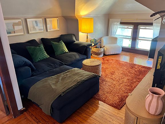 This cozy third-level space boasts its own private access and features original hardwood flooring, plaster walls, and original woodwork, perfect for those who appreciate old-world charm.