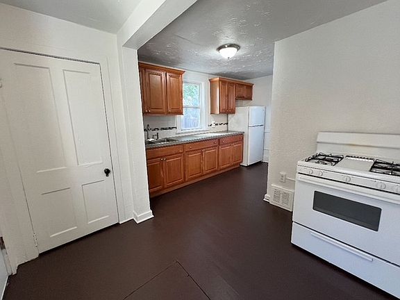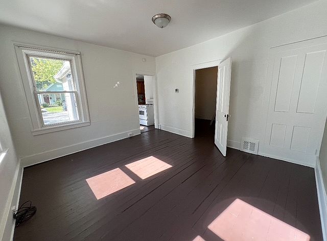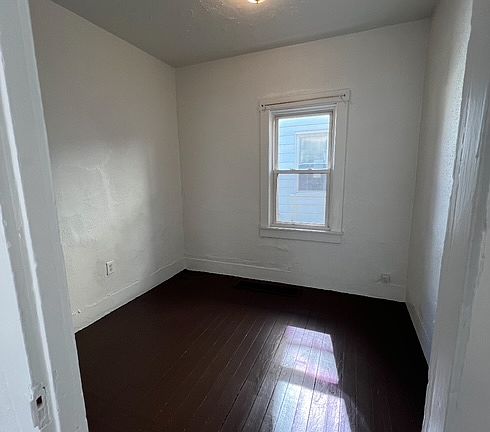 1 bedroom, 1 bath apartment in the rear of a triplex house. Off-street parking is available and ample natural light, creating a bright and welcoming atmosphere throughout. Freshly painted wood floors bring a clean, yet cozy feel to the space with a great layout. Shared washer and dryer on property.