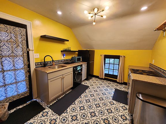 Kitchen: Compact but well-appointed kitchen with a stove, refrigerator, microwave, and new cabinetry. Washer/ Dryer included! No trips to the laundromat.