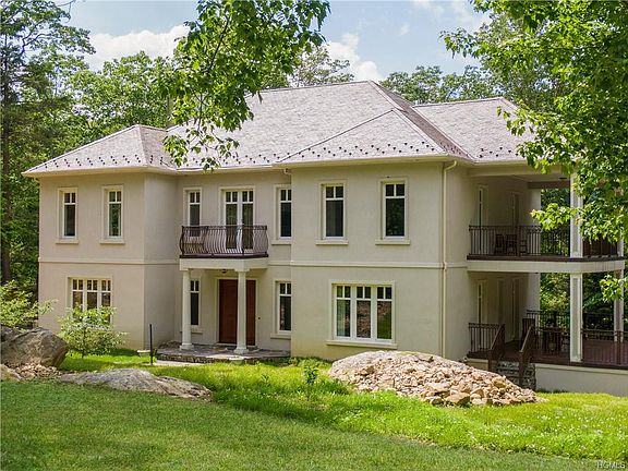 Truly unique, European-style, castle-like home located in the prestigious, secluded and exotic Tuxedo Park with magnetic aura on a dead-end 3-acre lot surrounded by 66 acres vacant land + state land. Sicenic, Ramapo mountain views, sloping property with mature trees, stone wall and absolute privacy! A walking pathway to solitude directly from the house, meditate at Meditation Point and breathe in nature's fresh air. Magnificent nature surrounds this home. Enjoy the convenience of cross-country skiing on the small hills directly from the house using a private trail in winter time and for an exercise in summer time and for hiking during the warmer months. The home's special features include a custom-built Center Hall Colonial from ICF Insulated Concrete Forms, 16"+-wide walls from bottom to 36 + feet up gives you the even temperature distribution for highly efficient monthly utility bills, radiant heated hardwood floor and very rarely used central air system during the summer months. The whole house is ventilated 24 hours per day by ERV- Energy Recovery Ventilator. 42 European tilt & turn windows open inside for easy accessing and gives you the feeling of being outdoors in the comfort of your own home. House elevator with access to all three floors Every room accept one has the entry to balcony or patio. Floors. First floor foyer, with two large closets, boasts living room with stone fireplace with baking functionality and balcony, dining room, large kitchen with the center island, granite French-style counter tops, 2 ovens, one is conventional with 4 ways of cooking, double sink with well water in the small sink, two refrigerators and glass doors to a balcony with scenic view. First floor bedroom with veranda, full bathroom with massage features, office with veranda, piano room with wood-burning stove, and balcony and big window facing mature fruit trees. Second floor has two master bedrooms each with their own en-suite bath with well water and one bathroom with the massage features. Media room built with dimensions calculated for the best sound reproduction, gives you the feeling you are in a concert hall. Powder room, additional dressing room with walk-in closet, dry sauna and laundry room. The lower level, servants quarters with the separate entrance or can be used for parents or for adult children. boasts a family room, kitchenette, full bathroom with massage features, lots of storage space and separate garages access second laundry room, three oversized closets.. Whole house generator, village water with no chlorine treatment & a well water for household use and fruit/vegetable gardens. The house drown in flowers in front, that why 0 landscape maintenance. There are 6 fruit trees in front of the house. 2 apple trees, 1 apricot, 2 peaches 1 sour cherry. The backyard of house has tree mature cornelian cherry, 3 wild apple trees There is nothing to do in this home, but unpack and enjoy for many years.to come! Welcome to Paradise in the Historic Tuxedo Park Beyond the guarded gates of the historic Tuxedo Park located on 7,000 acres with population of around 600, enjoy fishing and boating across the breathtaking Tuxedo Lake, swimming in Little Wee Wah Lake, or simply enjoying your Summer months barbecuing and picnicking with friends at the Wee Wah Beach.. Members of the Tuxedo Club can also take advantage of exclusive community activities which include golfing, tennis, racquetball, access to the private swimming pool and much more! Conveniently located only 45 minutes outside of New York City and with public transportation (train, bus) accessible from accross the security gates, Tuxedo Park offers a stress-free work commute for those traveling back and forth,