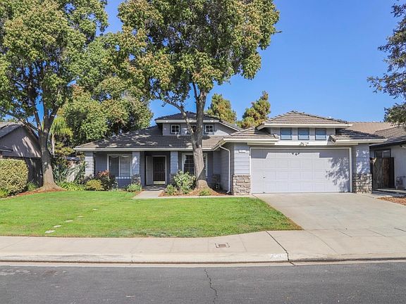 Home has a huge front yard with a inviting front porch. Large kitchen with tons of cabinets, newer tiled counter tops and back splash along with a great view of the front yard. Office/Den/Bedroom or Playroom right off of the living room. All 3 bedrooms have fans. Dual sinks in master bath. Large back yard, along with Clovis Schools.