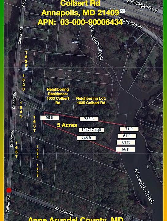 A Cozy 5-Acre Lot in The Stunning Anne Arundel County, MD! 11 Minutes Away from Annapolis! Relive the simpler times and take advantage of a stunning backdrop that is Anne Arundel County. This generous 5-acre lot is sitting just a few miles away from the western shores of Maryland. With convenient road access nearby, you can reach the state capital in under 15 minutes! This property’s pristine location offers you a quiet escape from the urban sprawl of the big cities. Annapolis is a lively, upbeat, contemporary city where four centuries of architecture embrace 21st-century living. Here all roads lead to the water and a nautical heritage intrinsically linked to the Chesapeake Bay. Property Type: Land State: MD County: ANNE ARUNDEL APN (Assessor's Parcel Number): 03-000-90006434 Property Address: Colbert Rd City: Annapolis Zip: 21409 Size: 5 Acre(s) Zoning: RA Annual Taxes: $1732.93 Center GPS Coordinates: 39.017776, -76.418416 Corner GPS Coordinates: 39.017939, -76.419645 39.018201, -76.419607 39.018143, -76.418802 39.017772, -76.417150 39.017630, -76.417214 39.017443, -76.417274 39.017289, -76.417300 39.017089, -76.417300 Elevation: 3.3 ft