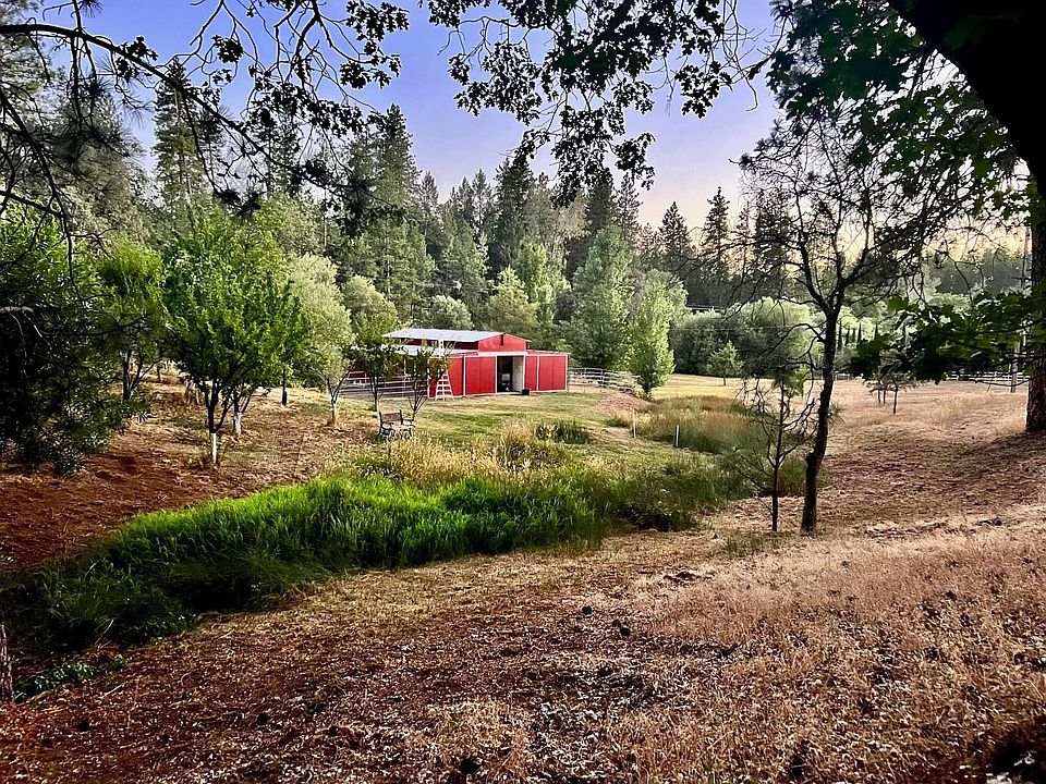 - Exterior features: 2 greenhouses, 30 amp plus optional 36 foot trailer, 80+ mature fruit trees, Above the fog, below the snow on the way to Tahoe, Close to Interstate, Electricity not included in rent, Garbage not included in rent, Garden, Heating system: Forced Air, Horse Barn and Turnouts, 5 stalls plus tack, Private paved drive, View Type: Gorgeous view, Water not included in rent, Year round stream