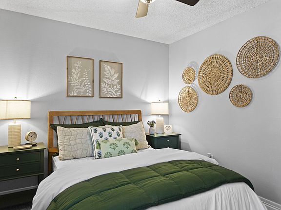 Each of the two bedrooms provides a restful retreat: the primary bedroom features a queen bed and walk-in closet, while the second bedroom offers a full bed and plenty of storage. The bathroom includes a tub/shower combo and single vanity with extra shelving for your essentials. A washer and dryer are conveniently located in the laundry room.