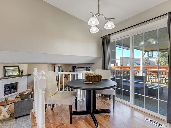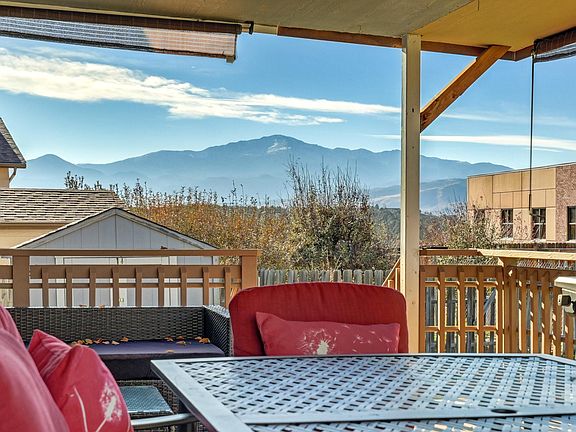 Our fully equipped kitchen has plenty of natural light and features a cozy table for two, perfect for morning coffee or a quick meal. The adjacent dining room offers a spacious table for six, making family dinners or gatherings a breeze. Step through the sliding door off the kitchen to access the deck in the backyard a spacious, fenced yard great for the kiddos and furry kids too! Enjoy a BBQ grill, table, and chairs, ideal for enjoying outdoor meals, fresh mountain air, and the mountain views right from the backyard. In the living room, sink into the large and comfortable sectional, warm up by the gas fireplace, or stream your favorite shows on the smart TV. There's a convenient bedroom with a queen-sized bed and TV adjacent to the living room, along with a bathroom featuring a walk-in shower. The laundry room is just steps away, ensuring a hassle-free stay for all your needs.