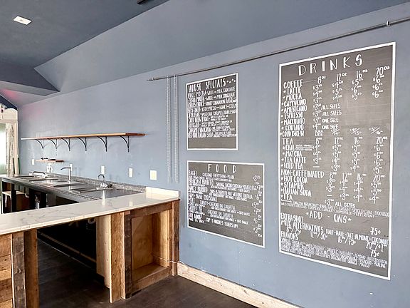 as a coffee shop with existing plumbing, electrical, and extensive counter space.