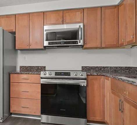 Updated kitchen: Granite counters, stainless-steel appliances, and gathering space for everyday meals or entertaining.