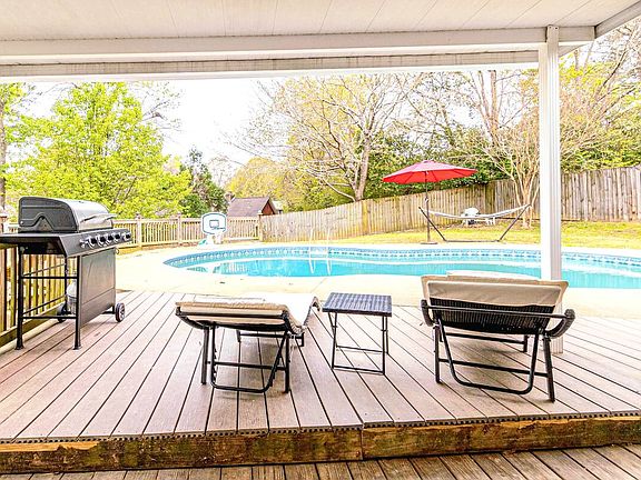 Step into your own private backyard oasis, where relaxation and fun come together under the open sky. Lounge in the inviting hammock shaded by a bright red umbrella, perfect for an afternoon nap or reading a good book. Take a refreshing dip in the sparkling pool, or fire up the grill for a delicious barbecue feast with family and friends. The spacious patio area offers plenty of room for outdoor gatherings, while the surrounding greenery and gentle sway of the trees create a peaceful, serene environment. It's the ideal setting for creating memories, whether basking in the sunshine or enjoying a cool evening breeze.