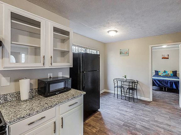 A pleasant house in Conley, GA. The property has 5 parking spots that are reserved on a first-come basis and is 0.8 miles away from public transportation. The nearest grocery store is Dollar General 1.3 miles away. For added security for members, this property has smart locks. Members can enjoy outdoor space on this property's patio/porch and yard. This property has a common space with dining table. The kitchen is equipped with a fridge, stove, storage space, microwave and oven.