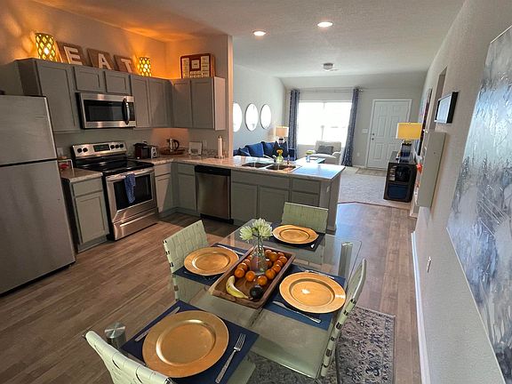 Split bedroom, open floor plan welcomes you with Luxury Vinyl Plank flooring in entry and wet areas, raised ceilings in Living Room, LED disk lights in Kitchen, stainless steel appliances. Bedrooms 2 and 3 are set to the right side of the home, one in front and one in rear with the Master Bedroom to the rear. Backs up to lot of wooded green space for added privacy. Comes with attic stairs for added storage.