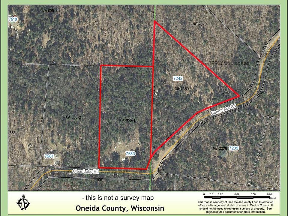 Approximately 9 acre parcel of mostly level, mixed tree cover that includes a poured foundation and utilities run to the property, including electricity, a well and a septic. The property offers an established driveway from Clear Lake Road that leads to a clearing with the foundational structure. Though the functionality of the utilities is not warranted, the existing footprint and electric likely provide a jumpstart to the building process and very well may cut down on building costs for prospective buyers. The property’s location near public boat landings for Lake Mildred and the Rhinelander Flowage provides wonderful year-round recreational opportunities. With housing inventory in limited supply, consider the option of building on this nicely wooded parcel on Clear Lake Road!