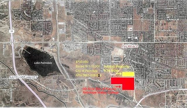 Location! Location! Location! This land is next to the future Antelope Valley College in Palmdale. Excellent parcel. Great views from property. Recently added curbs and sidewalks. Excellent parcel to build on or to keep as an investment. Newly developing area.
