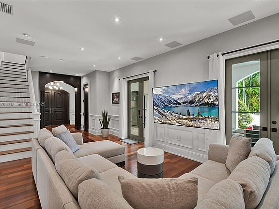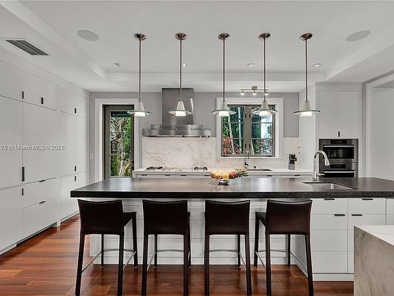 Coral Gables classic with a modern twist. This exquisite 2011 custom-built home blends timeless elegance with today's smart home features. Perfect for both everyday living and entertaining, with living, family, and main bedroom opening to a tropical pool and patio through French doors. Main bedroom and guest suite downstairs and two ensuite bedrooms upstairs, separated by a loft and balcony. Exceptional finishes throughout include Brazilian cherry wood floors, marble accents, custom Hector & Hector kitchen, impact windows/doors, Crestron system, water purification, and generator. Located on a vivid tree-lined street in the prestigious Golden Triangle, just steps from The Biltmore Hotel.