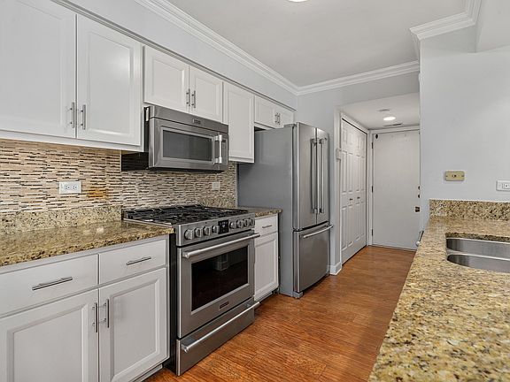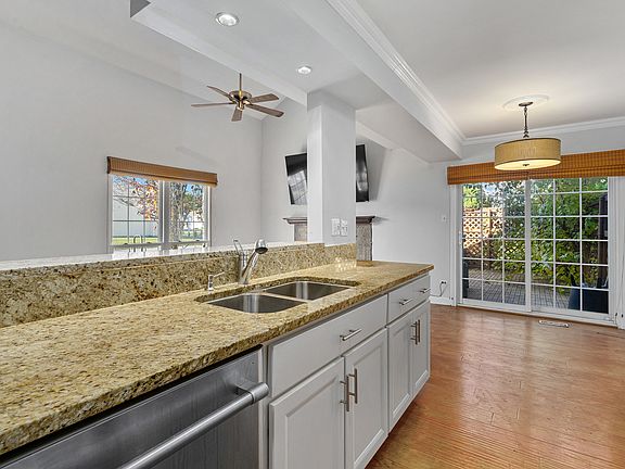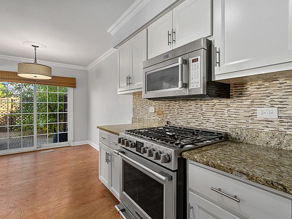Experience elevated living in this stunning, completely updated end-unit townhome-nestled in a sought-after community. From top to bottom, this residence exudes timeless elegance and sophisticated style. The beautifully renovated kitchen is the heart of the home, showcasing custom white cabinetry, granite countertops, a designer custom backsplash, and a pantry closet-perfect for both everyday living and inspired entertaining. The adjacent dining room features a door leading to the private enclosed patio, ideal for morning coffee or intimate outdoor gatherings. A bright and airy sun-filled vaulted living room serves as an impressive focal point, complete with a cozy gas-start fireplace for added warmth and ambiance. The main level also offers a stylishly remodeled powder room with a white granite vanity, crown molding throughout, and a convenient main-level laundry room. Retreat to the serene primary suite featuring double closets and access to the updated shared bath, finished with a crisp white granite vanity and modern fixtures. A second spacious bedroom provides comfort and flexibility for guests, office space, or multi-functional use. An extra-deep attached garage offers abundant additional storage with custom shelving-perfect for organization and lifestyle needs. This exceptional home blends luxury, comfort, and convenience in a premier community setting.