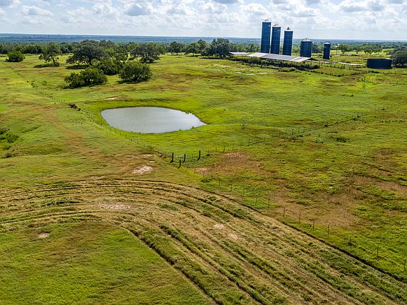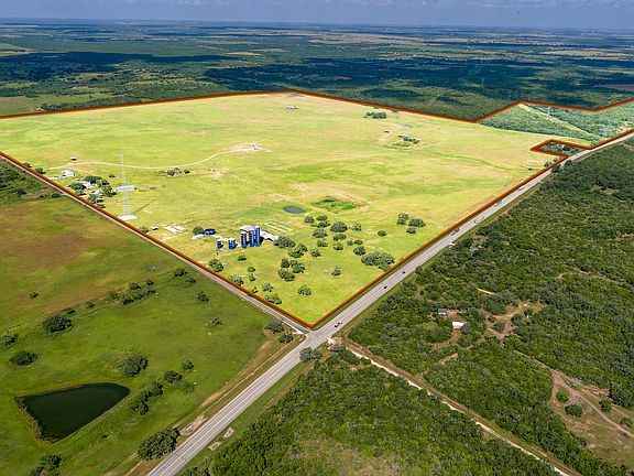 The Utley Ranch spans 411.61 acres of premier South Texas cattle & hay land in Karnes County, featuring prime frontage on SH-239 & Rockhill Rd. This highly improved operation is covered in lush Coastal Bermuda, ideal for grazing & hay production, & anchored by a diesel-powered irrigation pivot. Built for efficiency, the ranch includes 3 loafing sheds, 2 large hay barns, a spacious equipment barn, a small storage shed, & an impressive 8,000 sq. ft. covered cattle working facility. The property is fully fenced & cross-fenced for rotational grazing, with 4 stock tanks, 3 domestic water wells, & 1 irrigation well supporting livestock & hay operations. A 79-acre section along SH-239 remains in native South Texas brush, offering natural cover for livestock & wildlife-perfect for deer hunting or storm protection. The gentle rolling terrain features excellent drainage & productive pastures across 330+ improved acres. The ranch headquarters include a 2-story, 4-BR, 3-BTH brick home w/a pool, plus a 2,000 sq. ft. foreman's house, & a 1,240 sq. ft. 3-BR rental home, ideal for staff or income. Additional revenue comes from a cell tower lease & an active hunting lease. Several historic grain silos mark the property, adding a touch of character & visibility. With electricity, water, & strong fencing throughout, the Utley Ranch offers a rare combination of productivity, accessibility, & investment potential. Located in the heart of Karnes County's ranching region, it's convenient to local communities yet private enough for peaceful country living. San Antonio, Corpus Christi, & the Texas Coast are all within easy reach. Surface sale only with no minerals conveying.