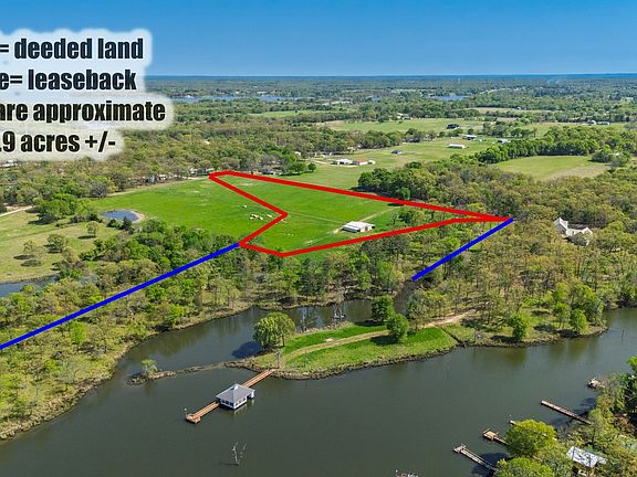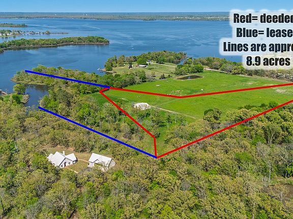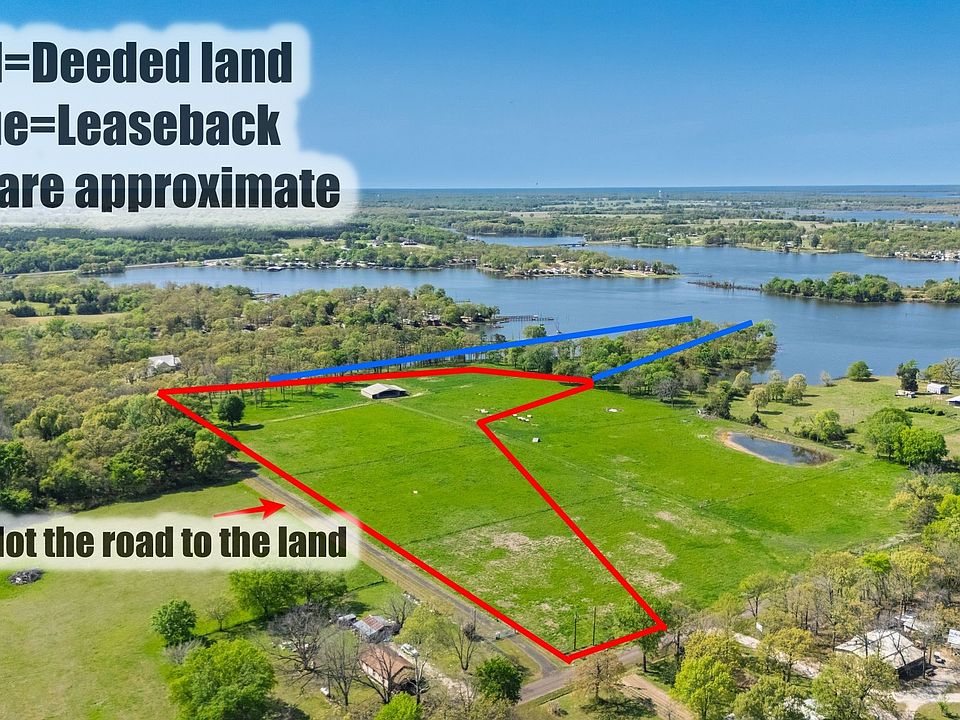 Estimated 8.9 acres of land that is waterfront on Lake Fork. Land has a large shop on it, that could be used as a barn as well. Water and power are at the road. 6 acres of leaseback on the lake, with very deep water at the end of the penisula you will share with the other 6.5 acres that is available in a different listing. This piece has a LOT of water frontage, and you will regularly see fishermen around, it is a hot spot for large Bass! Come build your dream home. Restricted to site built brick or rock homes, no barndos. Minimum of 1400sqft HVAC, 1 guest house is allowed.