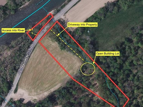 This 4 acre building lot borders the Genesee River located in Fillmore NY, Allegany County.