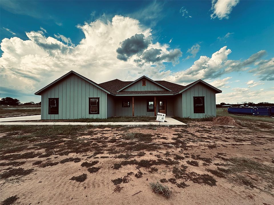 Open House Sat & Sun from 9-5! end October completion! Experience serene country living in this new construction home in Paradise ISD, free from city taxes and HOA fees. This beautifully crafted home showcases a spacious, open-concept design with 3 bedrooms and 2 bathrooms on almost 4 acres! Paint board & batten design supported by solid cedar stained columns. Easy maintenance with water resistant luxury vinyl plank floors in the common areas, carpet in the bedrooms, & accent tile in baths. The Kitchen has an eat-at-island with a pop of color on the shaker style cabinetry with a large kitchen island that seamlessly connects the kitchen to the living and dining areas. Abundant natural light pours through the front to back windows on to a generous sized back porch. The master suite includes double sinks and a walk-in closet conveniently connected to the laundry room. Nestled on 3.83 rural acres, this home offers the ideal escape from city life while still being conveniently close to modern amenities. This Lucas plan is fully equipped with all the features one would expect from a custom home, including split bedrooms, spacious porches, custom cabinetry and closets, Delta faucets, a concrete driveway, decorative mirrors, wall-mounted TV outlets, and hardline Ethernet ports. The builder has invested in high-quality details such as spray foam insulated walls and more. The two-car garage is thoughtfully designed with can lighting, a smart MyQ side-mount garage motor, and an auto-lock system for added security. The expansive back porch is perfect for hosting gatherings or simply enjoying peaceful evenings. NO HOA & NO CITY TAXES! September completion! Home has 3-phase inspected & a comes with 1-2-10 3rd Party Warranty for your peace of mind. Txt keyword ZHBHOME5 to 88000 for full details on this home! Directions & lot map at www.zhb.homes
