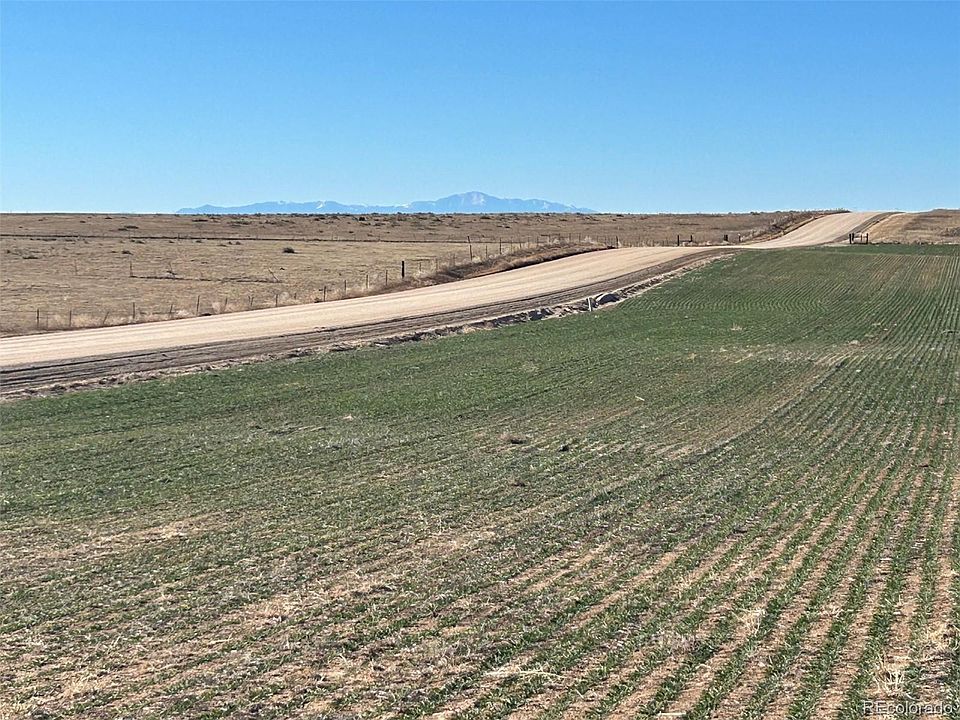 The terrain is rolling to level grassland and is currently farmed. Great views of Pikes Peak.