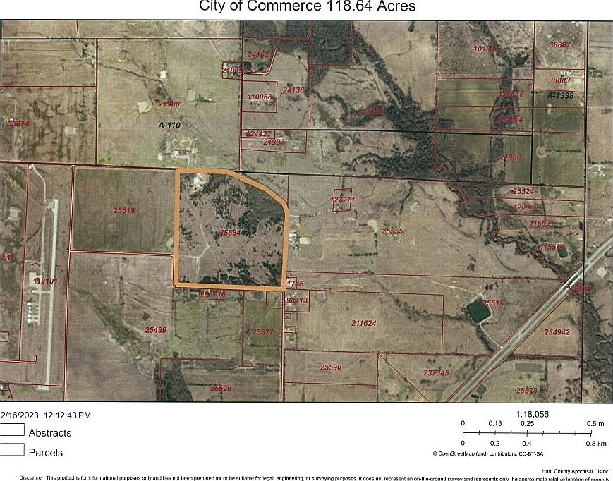 118.64 acres of land just north of Commerce. Partially open and wooded land is suitable for agriculture or recreational uses. This tract has been used owned by the City of Commerce and is being offered for sale at a significant discount over the HCAD assessed value. Buyer is responsible for verifying all information regarding the property, including utilities, flood plain, access, etc.