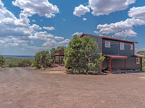 Huge Price Drop! Motivated seller! Bring all offers! Welcome to your Off-Grid Dream Home an easy 25 minutes from Show Low. This Unique Cabin is more than just a home, it's a lifestyle. If you're looking to escape the hustle & bustle of city life or create a Personal Sanctuary, this Fully Sustainable Off-Grid dream home is yours. Experience the perfect blend of modern convenience & rustic charm in this beautifully remodeled cabin. Every inch of this cabin has been thoughtfully renovated. All-new LED lighting, durable FIRE RESISTANT new metal roof, & metal siding. The spacious new deck, perfect for outdoor entertaining & watching the birds soar & storm clouds roll in. Interior walls are beautiful beetle wood, adding to the home's unique character. The new Primary bedroom & bath are on the first floor. Fully fenced & gated, Solar and Private Well. The home sits on a generous 5.1-acre lot, offering plenty of space for gardening and outdoor activities. A large detached workshop/garage offers ample space for hobbies, storage, and projects. The property also features a private well and a solar system designed to maximize sunlight from all angles, ensuring a fully sustainable, off-grid living experience. The entire property is fully fenced and gated, providing security and peace of mind. Enjoy the cool mountain air, the serenity of your surroundings, and the satisfaction of living in a sustainable, self-sufficient home.