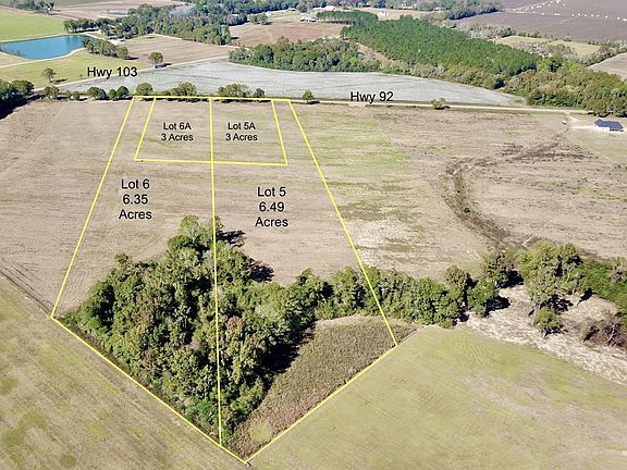 Lot 6 Beautiful 6.35 Acres with 60 ft of paved road frontage and then opens up to a beautiful homesite with Woods on the back border. Located on County rd 92 just off of Hwy 103 in Geneva County Very close to the Houston County Line. Approximately 3.5 Miles to Wicksburg school, 10 Miles to Flowers Hospital, 16 miles to Enterprise, 4 miles to Dollar General and 70 miles to Panama City Beach. Restricted to no more than 2 primary dwellings per parcel No commercial swine or chicken production. No commercial activity. Primary dwellings must have a min of 2000 sq ft heated and cooled. No mobile homes. Drawings and markers are estimate only. Seller will provide new survey.