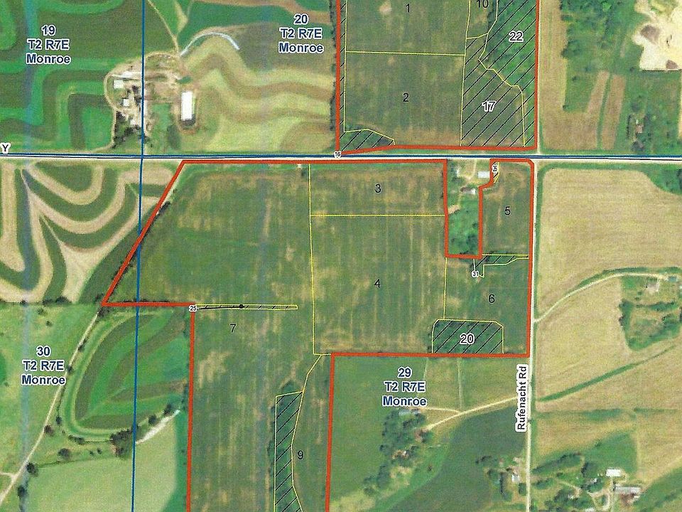Fairview Farm Group, Close to Monroe 135.24 acres fronting County Y and Rufenacht Roads! Land is rented for 2023 and 2024 with long term tenant. Tillable rented 118 acres. Gently rolling property in excellent location. Map attached showing 35 to 40 acres on the North side of Y and remainder on South. Legally abandoned well on N. side. Rent is $150 per acre of 118 acres. All measurements are approximate. Not included: crops for 2023 -2024.
