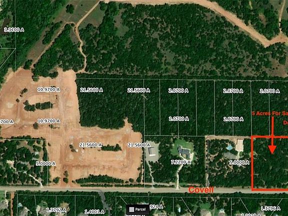 Great development opportunity or an ideal plot of ground to build your dream home on private, heavily wooded acreage in Edmond School District! This 5 acre plot sits exactly 2.5 miles East of 35 on Covell, at the intersection of E Covell & Douglas Blvd. Enjoy the privacy of rural land while still being just minutes away from Memorial High School, Central Middle School, Centennial Elementary, shopping, entertainment, and more! E-1 Zoning was recently granted to property across the street. Owner will subdivide as well. Incredible price on land in Edmond Schools!