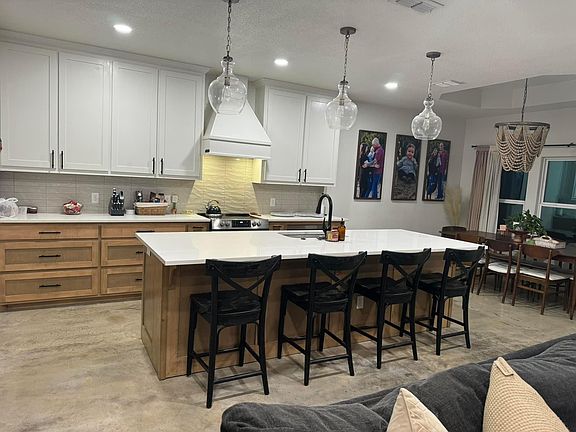 Nestled in a peaceful country setting, this custom-built home, constructed in 2021 offers an open-concept layout featuring a spacious kitchen, living, and dining area, ideal for both family time and entertaining. The kitchen boasts granite countertops, a large island, and an expansive pantry for ample storage. Stained concrete floors run throughout, adding durability and style.