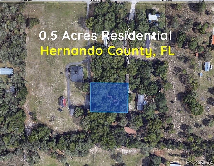 Beautiful half acre lot just outside of Brooksville. Great lot for your new home on a short hard packed dirt road, just off Moon Road (paved). Just outside the main shopping area, that includes theatres, restaurants, medical facilities and big box stores.
