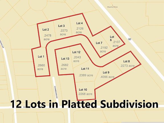 Attention builders & developers! **Owner financing available** 12 Lots in platted subdivision in central Palestine w/ fantastic high visibility location on Crockett Rd. Recently surveyed & cleared with select trees remaining on the lots. Could develop/build on all sites individually or just build on one and have a large surrounding property. 9 lots would have a Chamboard Drive address, 2 lots front on Crockett Rd, one lot fronts on Gay Ave. Buyer to verify any city restrictions/building requirements and utility availability.