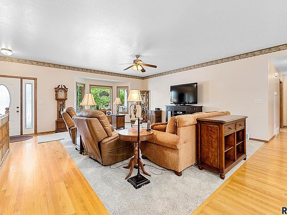 Beautiful home situated at the end of a cul-de-sac boasts beauty both inside and out. The spacious open floor plan on the main level is perfect for gatherings of any size. The beautifully maintained lot features over one acre of land, a large shed, and many mature trees (trees include Apple, White Birch, & Maple). The heated oversized 3 car garage is perfect for your boat, toys, or other activities. Located just minutes outside Sioux Falls with no backyard neighbors (land currently belongs to Tri-Valley school district) this well loved and properly built home is just waiting for you to make it yours!