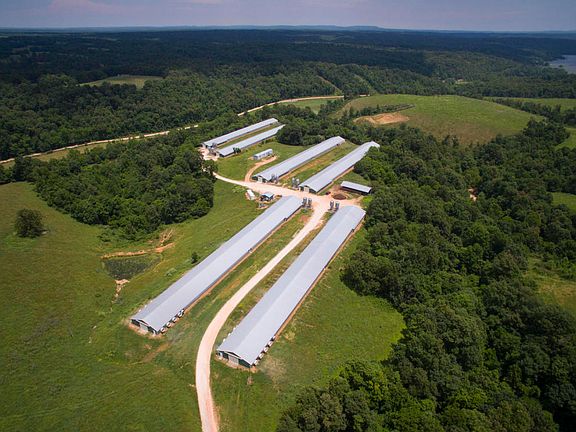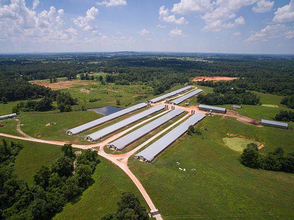 ne of the best cash flow scenarios if you're looking for an established broiler farm and you'd also like to run cattle as well. 107 acres TBD survey and about 50 acres of pasture. George's Inc chicken contract grosses over $600,000 annually and operates on about $200,000 in expenses. There are two hay barns, two stacking sheds and two pump rooms. 2 40x300s were built in 1994, 6 40x400s in 1996, and 5 43x500s in 1999. Some upgrades are in order but maintenance is current.