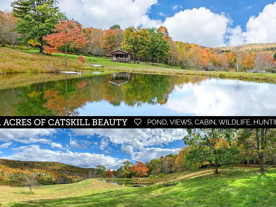 91 Acres of Great Western Catskills forestland / hunting land with a great view. Situated on a dead-end road outside the village of Bloomville, NY, the property is already a great hunting camp, but could be so much more. Framing the view to the south is a clean, stocked swimming pond with its own dock. Trails and woodlands rise to the western slope. Electric and new DTC Fiber internet are available on Crowe Road.The current owner has invested in providing road access from the town maintained road and from a private sub-division road to the north. The cleared view is positioned with an easterly aspect, the morning and mid-day sun offers the potential for a solar installation! There are several spots ideal for home-sites with breath-taking views. Your dream is within reach!The 400 sqft cabin is currently equipped with gas lights & cook-stove, wood burning stove, a metal roof. 180 square feet of covered porch means you can easily take in all that great scenery while staying protected and comfortable. This forestland has been used as a hunting retreat with food plots, browse, and water resources. The owner's trail system is suitable for ATV use, mountain biking, hiking, skiing or just a pleasant hike.17 minutes to Delhi, the County seat. 20 minutes to Stamford, the Queen of the Catskills. And under 3 hours from NYC.